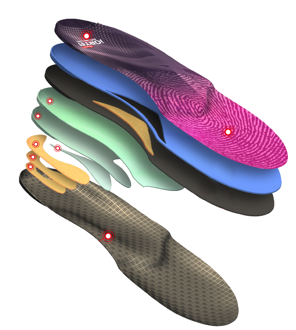 Wkładki indywidualne są projektowane na podstawie badania diagnostycznego, osobno dla prawej i dla lewej stopy. Zapewniają skuteczność oddziaływania na przyczynę schorzenia, idealne dopasowanie, komfort i bezpieczeństwo użytkowania.